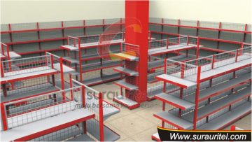 Ketebalan shelving 0,7MM mampu manahan beban 75KG per shelving. Shelving adalah penyangga display.