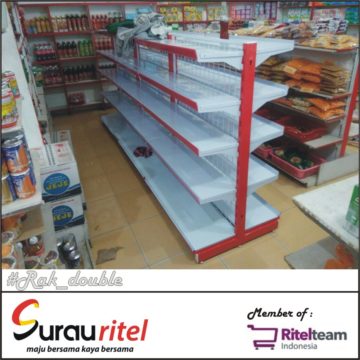 Rak Double adalah rak besi yang memiliki 2 sisi, sisi sebelah kanan dan sisi sebelah kiri. rak besi ini biasanya terletak ditengah ruangan toko maka dari itu rak ini biasa juga disebut sebagai Rak Besi.